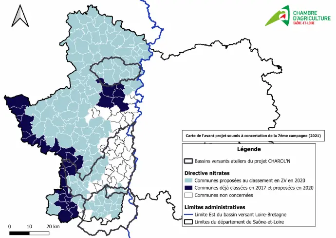 La proposition de classement de la 7ème campagne concernait 128 communes supplémentaires à classer. Ce classement aurait porter à 158 le nombre de communes de Saône-et-Loire classées en zone vulnérable (Bassin versant Loire-Bretagne). Ce classement n'a pas eu lieu en échange du démarrage du projet CHAROL'N.